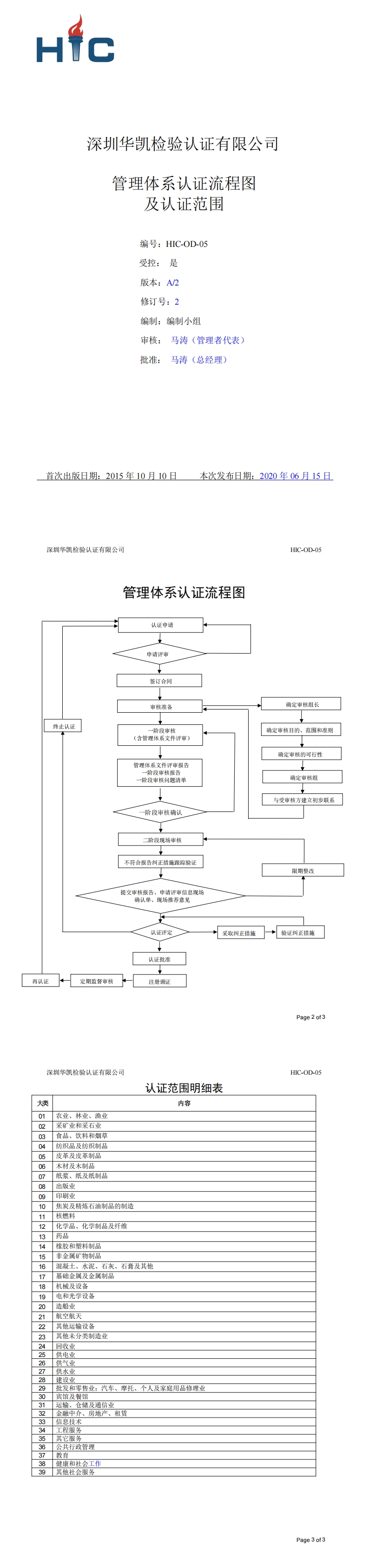 HIC-OD-05 管理体系认证流程及范围