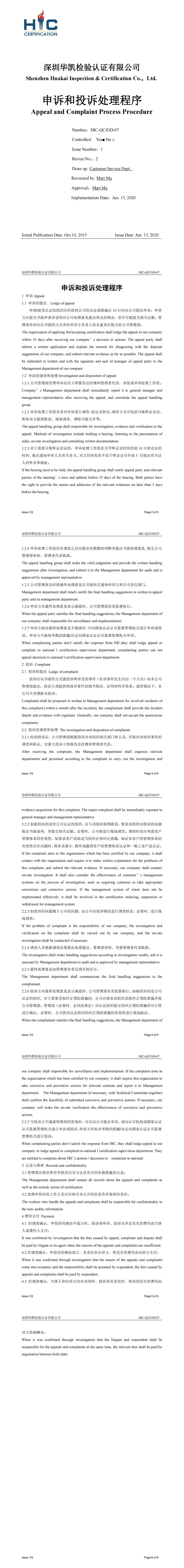 HIC-QC OD-07 Appeal and Complaint Process Procedure Issue1-2